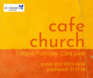 Cafe Church meets on the 3rd Tuesday of the month at 7:30pm on Zoom. Â We’re working our way through Rob Bell’s Nooma series which you can fine in YouTube.